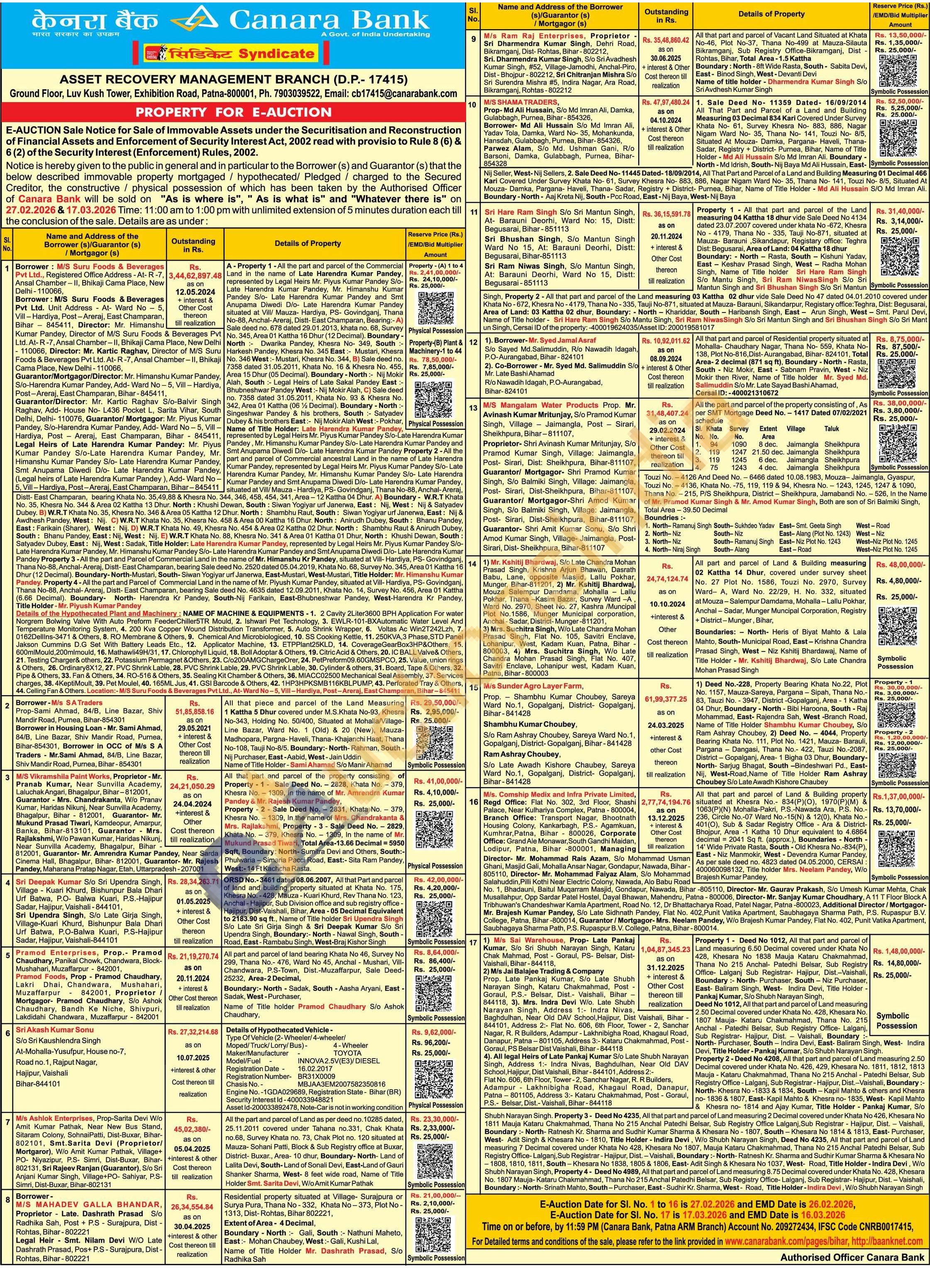 -Deed No 4208, All that part and parcel of Land measuring 2.50 Decimal covered under Khata No. 426, 429, Khesara No. 1811, 1812, 1813 Mauja - Kataru Chakmahmad, Thana No 215 Anchal - Patedhi Belsar, Sub Registry Office - Lalganj, Sub Registrar - Hajipur, Dist.-Vaishali, Boundary :-North-Khesra No-1833 & 1834, South - Kapil Mahto & others and Khesra по- 1836 & 1807, East-Kapil Mahto & Khesra no-1835, West- Kapil Mahto & Khesra no- 1814 and Ajay Kumar, Title Holder Pankaj Kumar, S/o Shubh Narayan Singh. Property 3- Deed No 4235, All that part and parcel of Land measuring 2 Decimal covered under Khata No 426, Khesara No 1811 Mauja Kataru Chakmahmad, Thana No 215 Anchal Patedhi Belsar, Sub Registry Office Lalganj, Sub Registrar - Hajipur, Dist. - Vaishali, Boundary:- North- Ratnesh Kr. Sharma and Sudhir Kumar Sharma & Khesara No - 1807, South - Khesara No 1814 & 1813, East- Purchaser, West- Adit Singh & Khesara No - 1810, Title Holder - Indira Devi, W/o Shubh Narayan Singh, Deed No 4235, All that part and parcel of Land measuring 7 Decimal covered under Khata No 428, Khesara No 1807, Mauja Kataru Chakmahmad, Thana No 215 Anchal Patedhi Belsar, Sub Registry Office-Lalganj, Sub Registrar - Hajipur, Dist. - Vaishali, Boundary:-North-Ratnesh Kr. Sharma and Sudhir Kumar Sharma & Khesara No 1808, 1810, 1811, South Khesara No 1838, 1805 & 1806, East-Adit Singh & Khesara No 1037, West- Road, Title Holder - Indira Devi, W/o Shubh Narayan Singh, Property 4- Deed No 4989, All that part and parcel of Land measuring 8.75 Decimal covered under Khata No. 428, Khesara No. 1807 Mauja-Kataru Chakmahmad, Thana No 215 Anchal Patedhi Belsar, Sub Registry Office- Lalganj, Sub Registrar-Hajipur, Dist. - Vaishali, Boundary:-North-Srinath Mahto, South-Purchaser, East-Sudhir Kr. Sharma, West Road, Title Holder-Indira Devi, W/o Shubh Narayan Singh