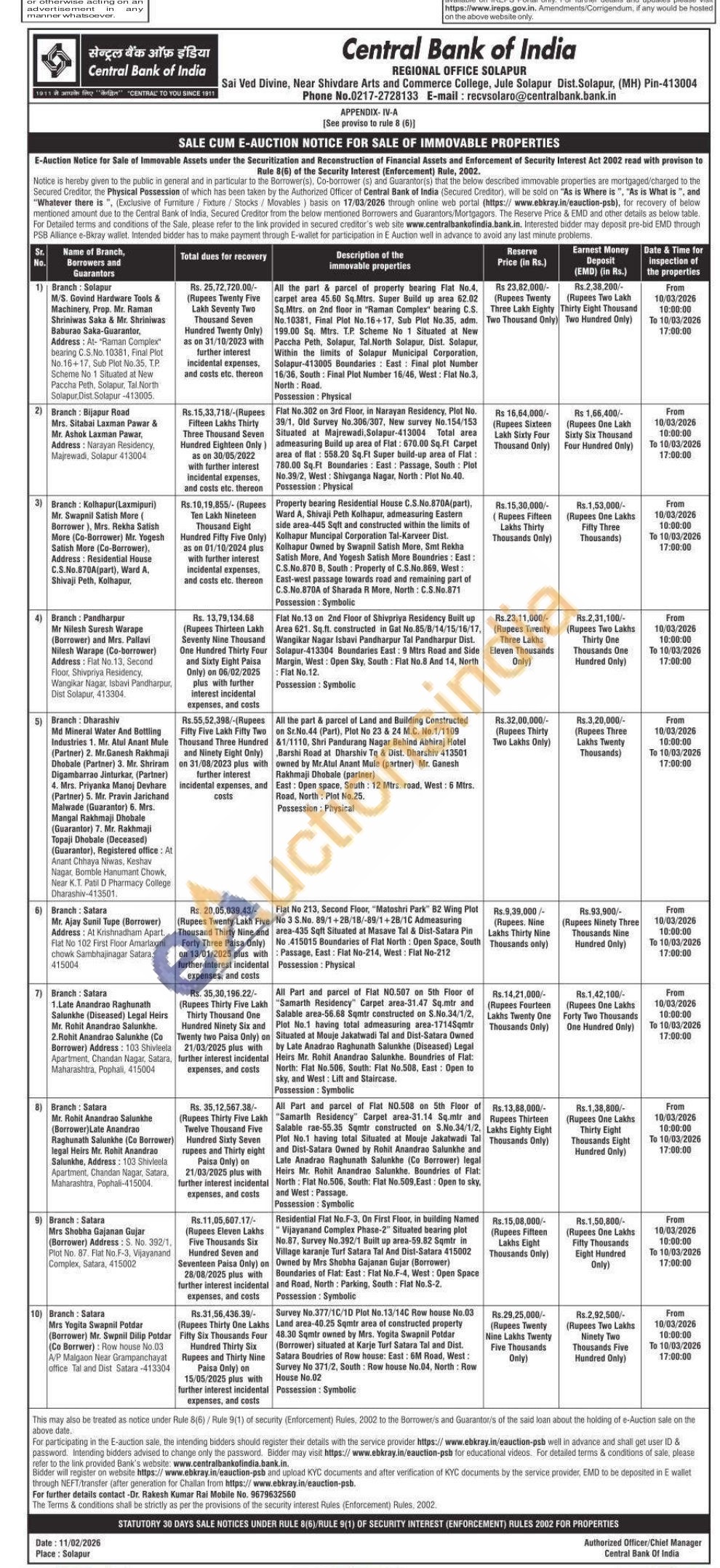 Property bearing Residential House C.S.No.870A(part), Ward A, Shivaji Peth Kolhapur, admeasuring Eastern side area-445 Sqft and constructed within the limits of Kolhapur Muncipal Corporation Tal-Karveer Dist. Kolhapur Owned by Swapnil Satish More, Smt Rekha Satish More, And Yogesh Satish More Boundries: East: C.S.No.870 B, South: Property of C.S.No.869, West: East-west passage towards road and remaining part of C.S.No.870A of Sharada R More, North C.S.No.871 Possession: Symbolic