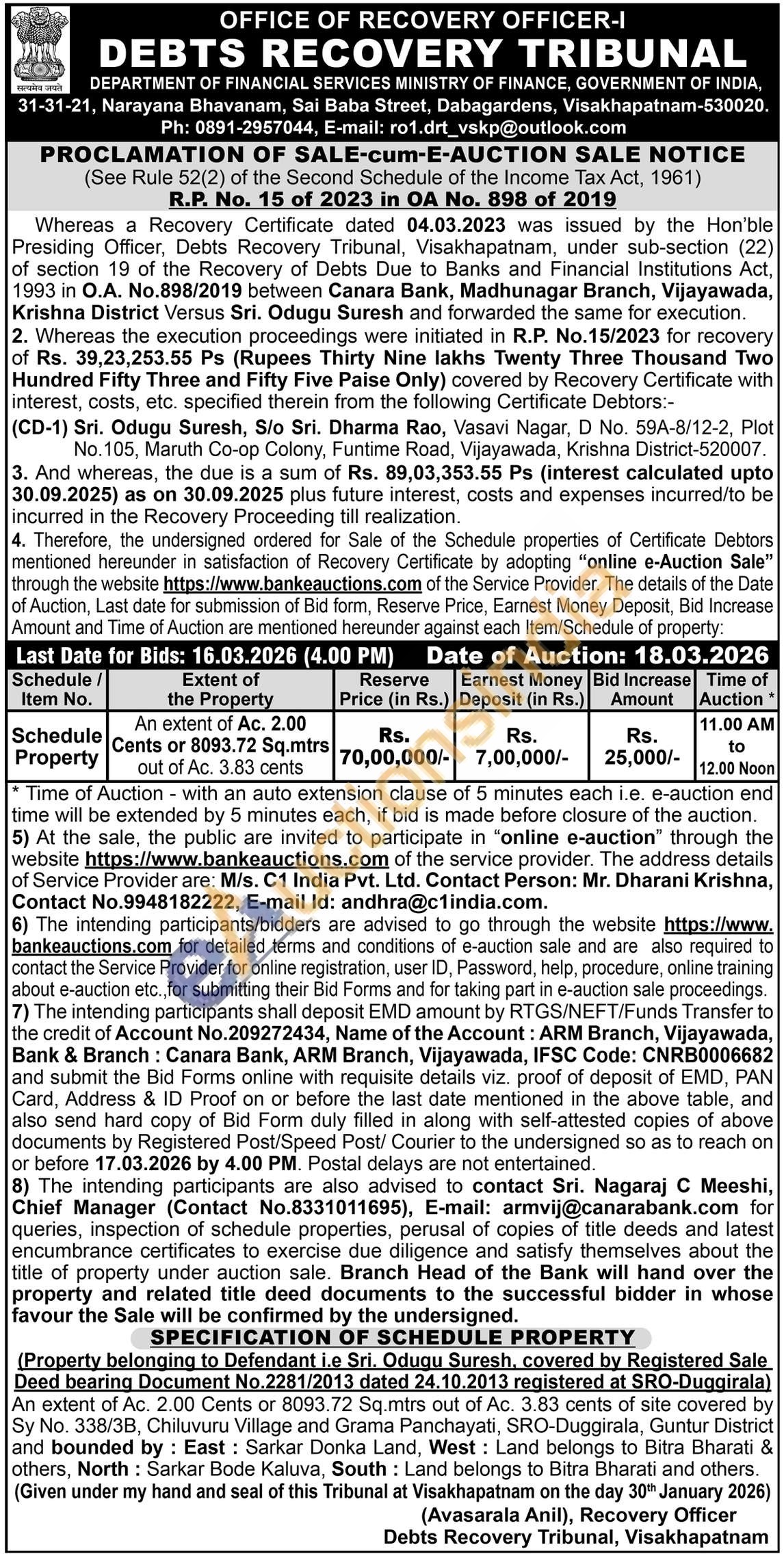 An extent of Ac. 2.00 Cents or 8093.72 Sq.mtrs out of Ac. 3.83 cents of site covered by Sy No. 338/3B, Chiluvuru Village and Grama Panchayati, SRO-Duggirala, Guntur District and bounded by: East: Sarkar Donka Land, West: Land belongs to Bitra Bharati & others, North: Sarkar Bode Kaluva, South: Land belongs to Bitra Bharati and others