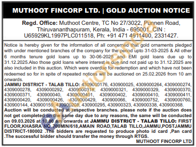 Muthoot Fincorp Ltd Gold Auctions Auction in Jammu