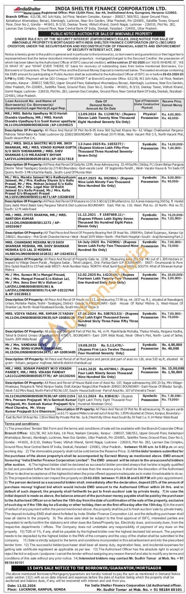 Contact Authorised officer. Mr. Sudhir Tomar at Mob. No. +91 9818460101