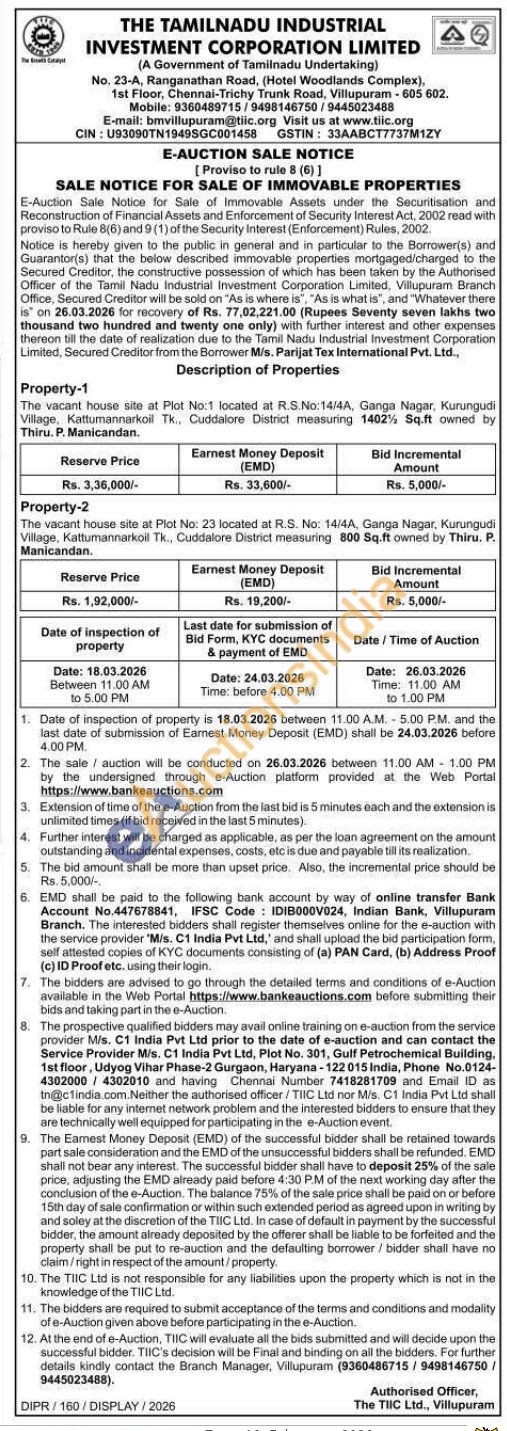 contact the Branch h Man Manager, Villupuram (9360486715/9498145750/9445023488).