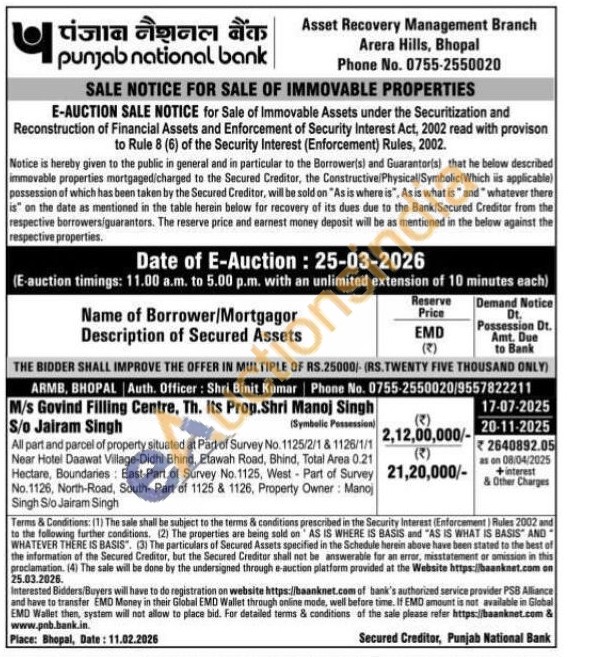 All part and parcel of property situated at Part of Survey No. 1125/2/1 & 1126/1/1 Near Hotel Daawat Village-Didhi Bhind, Etawah Road, Bhind, Total Area 0.21 Hectare, Boundaries: East-Part of Survey No.1125, West - Part of Survey No.1126, North-Road, South- Part of 1125 & 1126, Property Owner: Manoj Singh Slo Jairam Singh