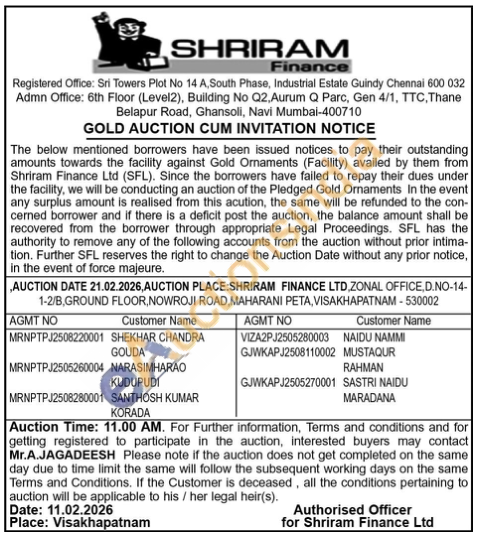 Shriram Finance Ltd Gold Auctions Auction in Visakhapatnam