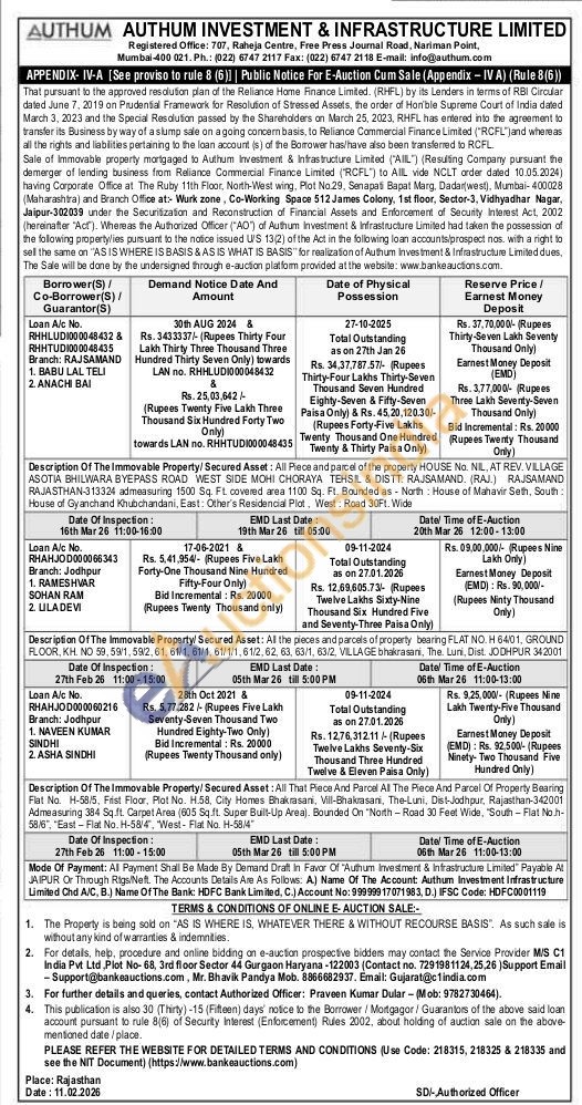 Description Of The Immovable Property/Secured Asset: All Plece and parcel of the property HOUSE No. NIL, AT REV. VILLAGE ASOTIA BHILWARA BYEPASS ROAD WEST SIDE MOHI CHORAYA TEHSIL & DISTT. RAJSAMAND. (RAJ) RAJSAMAND RAJASTHAN-313324 admeasuring 1500 Sq. Ft. covered area 1100 Sq. Ft. Bounded as North House of Mahavir Seth, South: House of Gyanchand Khubchandani, East: Other's Residencial Plot, West Road 30Ft. Wide