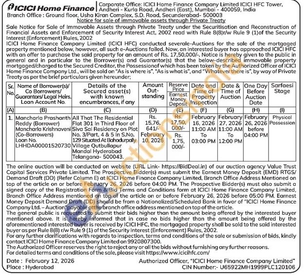 All That The Residential Flat 301 in Third Floor of Siva Sai Residency on Plot No. 3/Part. 4 & 5 in S.No. 129 Situated At Bahadurpally Village Qutbullapur Mandal Hyderabad Telangana-500043