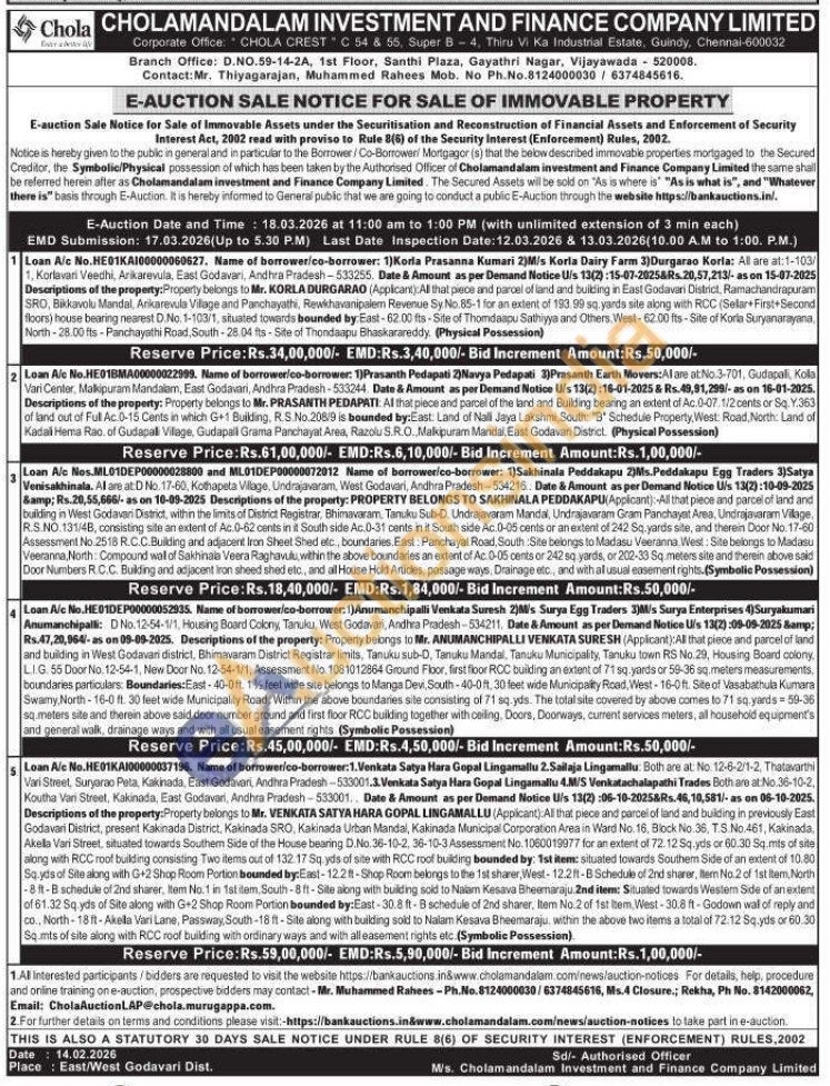 All that piece and parcel of land and building in West Godavari district, Bhimavaram District Registrar limits, Tanuku sub-D, Tanuku Mandal, Tanuku Municipality, Tanuku town RS No.29, Housing Board colony, LIG. 55 Door No. 12-54-1, New Door No. 12-54-1/1, Assessment No. 1081012864 Ground Floor, first floor RCC building an extent of 71 sq yards or 59-36 sq. meters measurements. boundaries particulars: Boundaries: East-40-0 ft. 1% feet wide site belongs to Manga Devi, South-40-0ft, 30 feet wide Municipality Road, West-16-0 ft. Site of Vasabathula Kumara Swamy North-16-0 ft. 30 feet wide Municipality Road. Within the above boundaries sile consisting of 71 sq.yds. The total site covered by above comes to 71 sq yards-59-36 sq.meters site and therein above said door number ground and first floor RCC building together with ceiling, Doors, Doorways, current services meters, all household equipment's and general walk, drainage ways and with all usual easement rights (Symbolic Possession)