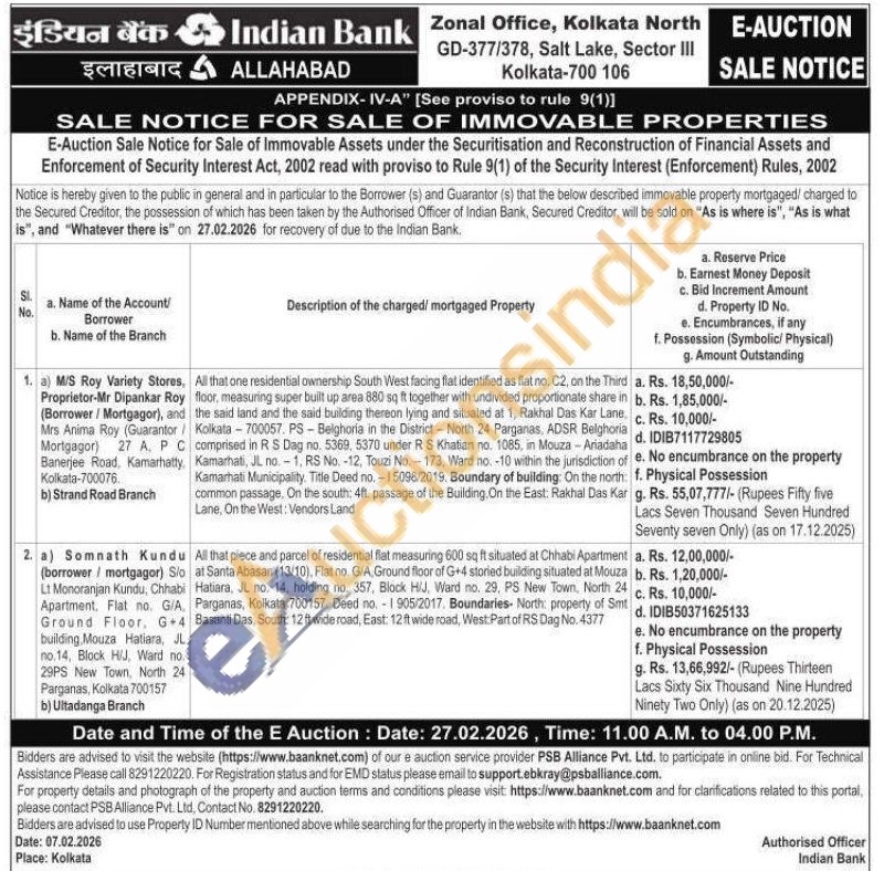 All that one residential ownership South West facing flat identified as flat no. C2, on the Third floor, measuring super built up area 880 sq ft together with undivided proportionate share in the said land and the said building thereon lying and situated at 1, Rakhal Das Kar Lane. Kolkata-700057. PS Belghoria in the District-North 24 Parganas, ADSR Belghoria comprised in R S Dag no. 5369, 5370 under R S Khatian no. 1085, in Mouza - Ariadaha Kamarhati, JL no. -1, RS No. -12, Touzi No.-173, Ward no. -10 within the jurisdiction of Kamarhati Municipality. Title Deed no. -15098/2019, Boundary of building: On the north: common passage. On the south: 4ft passage of the Building. On the East: Rakhal Das Kar Lane, On the West: Vendors Land