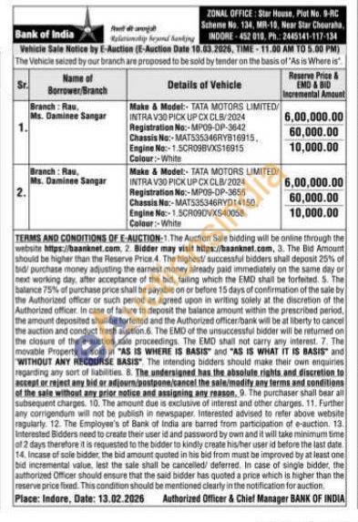 Make & Model: TATA MOTORS LIMITED/INTRA V30 PICK UP CX CLB/2024 . Registration No:-MPOS-OP-3642 Chassis No:-MAT535346RY816915, Engine No:-1.5CR09BVXS16915 Colour:-White