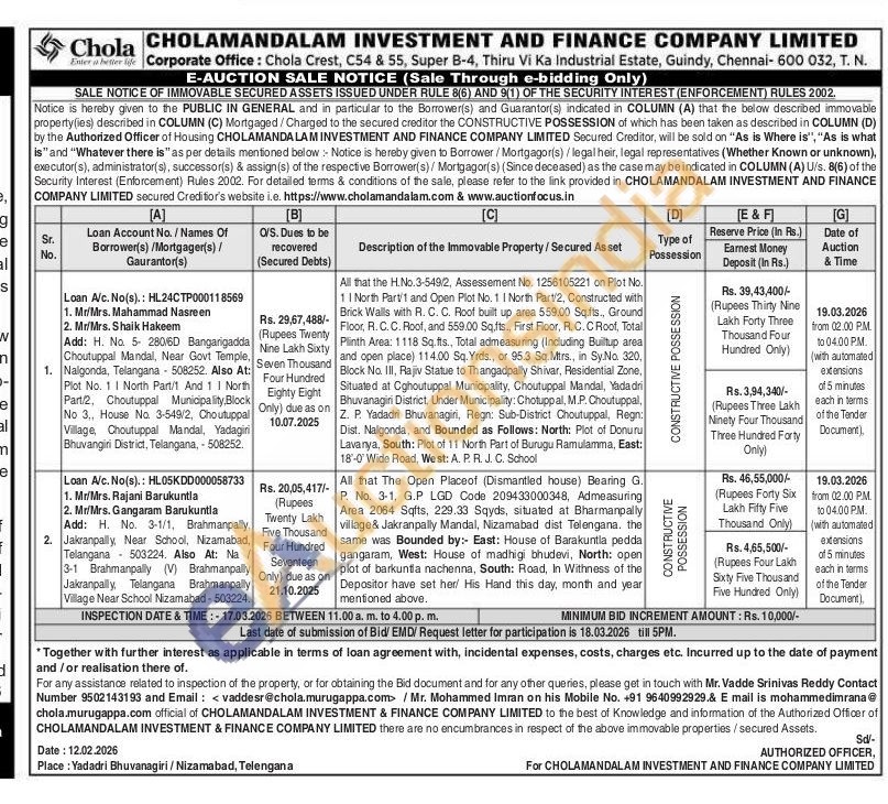 All that The Open Placeof (Dismantled house) Bearing G. P. No. 3-1, G.P LGD Code 209433000348, Admeasuring Area 2064 Sqfts, 229.33 Sqyds, situated at Bharmanpally village & Jakranpally Mandal, Nizamabad dist Telengana. the same was Bounded by:- East: House of Barakuntla pedda gangaram, West: House of madhigi bhudevi, North: open plot of barkuntia nachenna, South: Road, In Withness of the Depositor have set her! His Hand this day, month and year mentioned above..