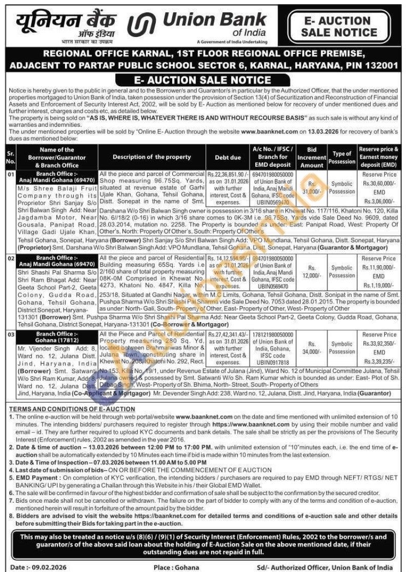 All the piece and parcel of Residential Building measuring 655q. Yards ie 2/160 share of total property measuring -08K-0M Comprised in Khewat No. 4273, Khatoni No. 4847, Killa No.253/18, Situated at Gandhi Nagar, within M.C Limits, Gohana, Tehsil Gohana, Distt. Sonipat in the name of Smt. Pushpa Sharma W/o Shri Shashi Pal Sharma vide Sale Deed No. 7053 dated 28.01.2015. The property is bounded as under: North-Gali, South-Property of Other, East-Property of Other, West-Property of Other