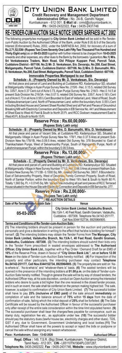Contact Telephone No.04142-251177, Cell Nos. 9344152734, 8925964905