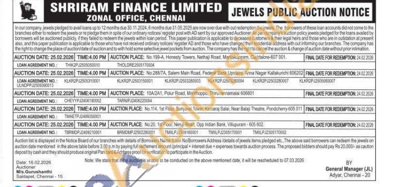 Shriram Finance Ltd Gold Auctions Auction in Cuddalore
