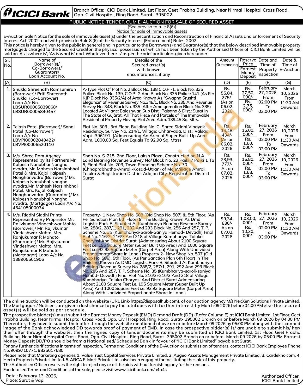 Property- 1 New Shop No. 508 (Old Shop No. 507) &, 5th Floor, (As Per Sanction Plan 6th Floor) In The Building Known As Dmd Logistic Park-B, Situated At Kumbhariya Bearing Revenue Survey No. 288/2, 287/1, 291, 292 And 293 Block No. 256 And 257, Τ. Ρ. Scheme No. 35 (Kumbhariya-Saroli-Saniya Hemad- Devadh) Final Plot No. 216/2+216/3 And 218 of Village Kumbhariya, Taluka Choryasi And District Surat. (Admeasuring About 2100 Square Feet i.e. 195 Square Meter (Super Built Up Area) And 1000 Square Feet i.e. 92.93 Square Meter (Carpet Area) Along With Undivided Proportionate Share In Land.) Property 2- New Shop No. 507 (Old Shop No. 506), 5th Floor, (As Per Sanction Plan 6th Floor) In The Building Known As DMD Logistic Park-B, Situated At Kumbhariya Bearing Revenue Survey No. 288/2, 287/1, 291, 292 And 293 Block No. 256 And 257, T. P. Scheme No. 35 (Kumbhariya-saroli-saniya Hemad-Devadh) Final Plot No. 216/2+216/3 And 218 of Village Kumbhariya, Taluka Choryasi And District Surat Admeasuring About 2100 Square Feet i.e. 195 Square Meter (Super Built Up Area) And 1000 Square Feet i.e. 92.93 Square Meter (Carpet Area) Along With Undivided Proportionate Share In Land.)