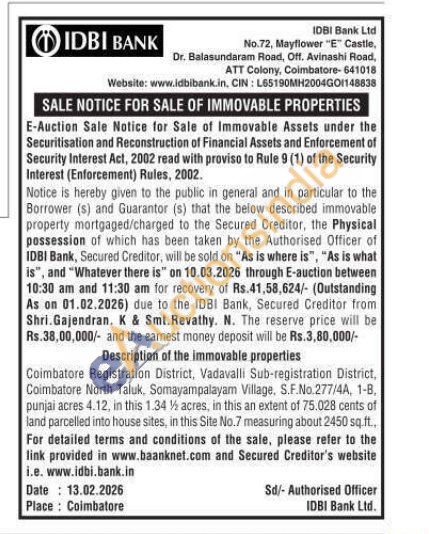 Coimbatore Registration District, Vadavalli Sub-registration District, Coimbatore North Taluk, Somayampalayam Village, S.F.No.277/4A, 1-B, punjai acres 4.12, in this 1.34 ½ acres, in this an extent of 75.028 cents of land parcelled into house sites, in this Site No.7 measuring about 2450 sq.ft.