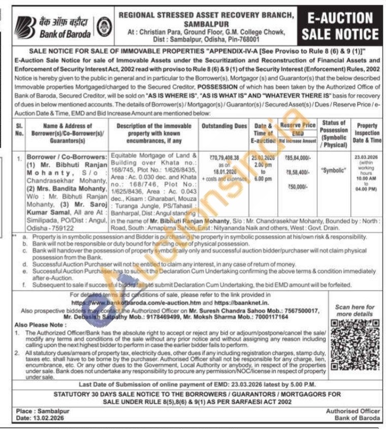 contact the Authorized Officer on Mr. Suresh Chandra Sahoo Mob.: 7567500017, Mr. Debasish Satpathy Mob.: 9178469499, Mr. Moksh Sharma Mob.: 7000117164