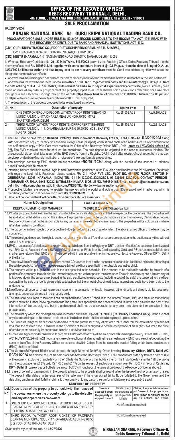 THIRD FLOOR (WITHOUT ROOF RIGHTS) OF PROPERTY BEARING MUNICIPAL NO, L-117, ON AREA MEASURING 66.50 SQ. YDS., SHASTRI NAGAR, DELHI