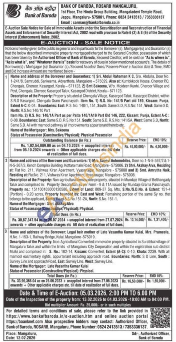 Description of the Property: Non-Agricultural Converted immovable property situated in Surathkal village of Mangaluru Taluk and within the limits of Mangaluru City Corporation and within the registration sub district Mulki and comprised in: S. No.: 102-14, Kissam: Converted, Extent (A-C): 0-10, Khata: 2239. With all mamool easmentary rights, appurtenant including approach road. Boundaries: North: SD Line, South: Survey Line and approach Road, East: Survey Line, West: Survey Line