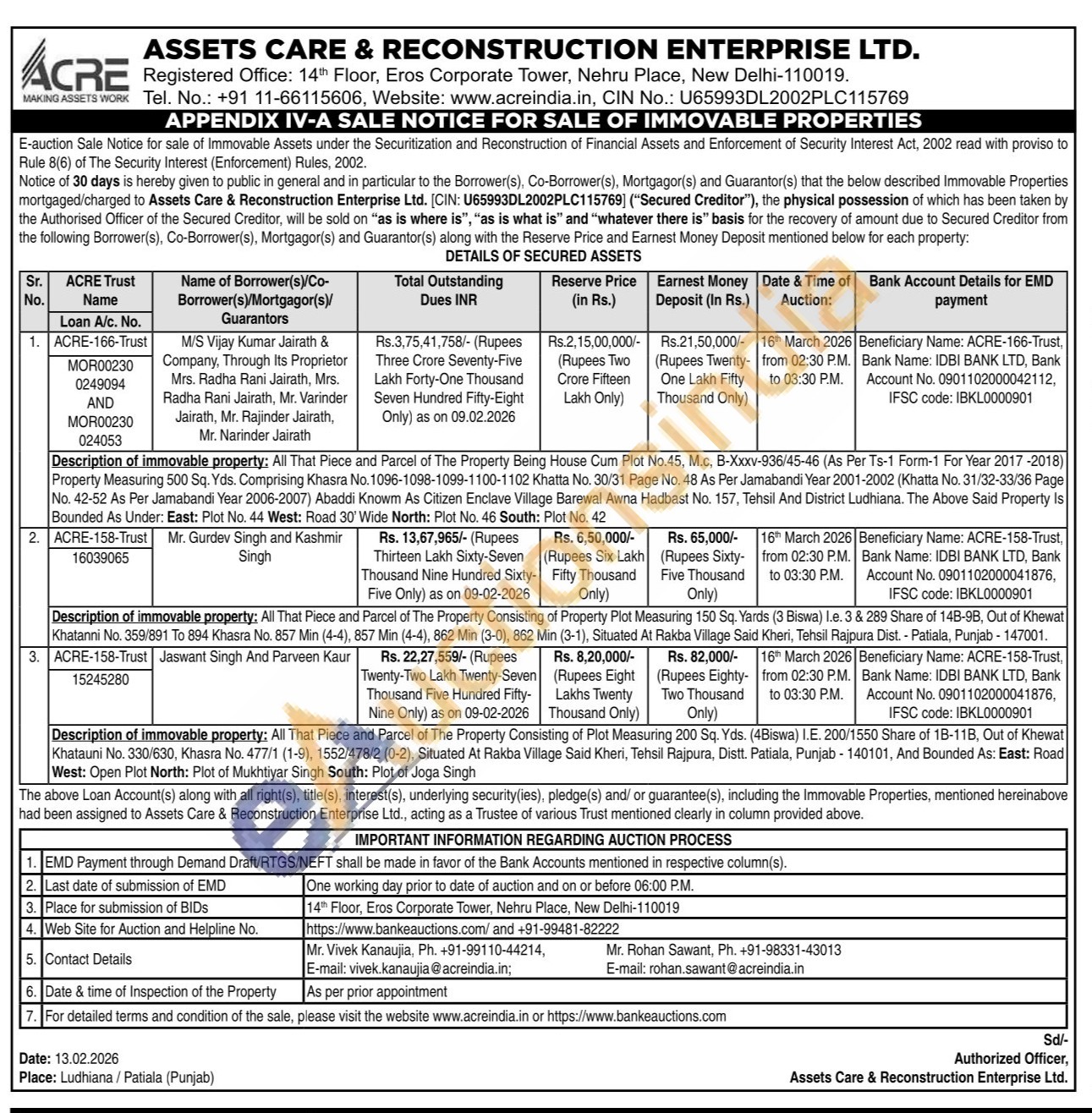 Description of immovable property: All That Piece and Parcel of The Property Consisting of Property Plot Measuring 150 Sq. Yards (3 Biswa) I.e. 3 & 289 Share of 14B-9B, Out of Khewat Khatanni No. 359/891 To 894 Khasra No. 857 Min (4-4), 857 Min (4-4), 862 Min (3-0), 862 Min (3-1), Situated At Rakba Village Said Kheri, Tehsil Rajpura Dist. - Patiala, Punjab - 147001.