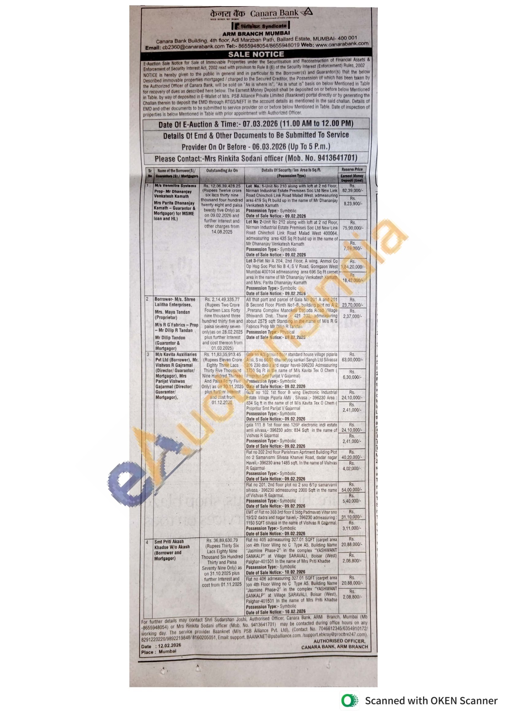 Lot No. 1-Unit No 210 along with loft at 2 nd Floor, Nirman Industrial Estate Premises Soc Ltd New Link Road Chincholi Link Road Malad West. admeasuring area 419 Sq Ft build up in the name of Mr Dhananjay Venkatesh Kamath