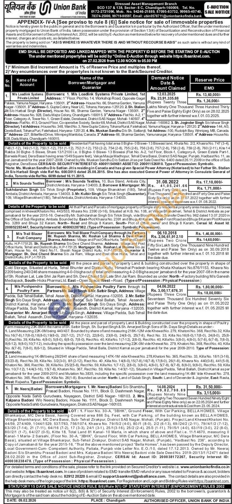 All the piece and parcel of property Land & Building constructed over the property in shape of Poultry Farm measuring 23K-8M in the name of Sh. Satbir Singh, Sh. Surjeet Singh & Sh. Amarjeet Singh Sons of Sh. Daya Singh Details as under:- 1. Land Measuring 22K-0M being 440/437. Bounded by share ofland measuring 218K-12M vide KhewatNo. 279, Khatoni No. 368, Rect No.32, Killa No.16(7-8),17(8-0),18(8-0), 19(8-0), 20(7-12), 21(7-12), 22(8-0), 23(8-0), 24(8-0), 25(7-8), Rect No. 33, Killa No.16(8-0),17(8-0), 24(8-0), 25(8-0), Rect No. 39, Killa No. 4(8-0), 5(8-0), 6(8-0), 7(8-0), RectNo. 40, Killa No. 1(7-12), 2(8-0), RectNo. 40, Killa No. 3(8-0), 4(8-0), 5(7-8), 6(7-8), 7(8-0), 8(6-12), 9(8-0),10(7-12), including the specificpossession over the land measuring 22K-0M vide Khewat No. 279, Khatoni No. 368, RectNo. 40, Killa No.6(7-8), 7(8-0), 8(6-12), Situated in Village Padda, Tehsil Balla, District Karnal as per jamabandi for the year 2009-2010. Type of Possession: Symbolic. 2. Land measuring 1K-8M being 28/2941 share of land measuring 147K-1M vide Khewat No. 278, Khatoni No. 365, Rect No. 33, Killa No. 18/1 (3-16), 23/23-8), Rect No.39, Killa No. 3/2(3-0), 8/1 (2-12), Rect No. 40, Killa No. 14(8-0), 15(7-8),16(7-8), 17(8-0), 26(1-8), Khasra No. 440(0-8), 441(5-9), Khatoni No. 366, Rect No. 39, Killa No. 25/2(5-8), Rect No. 59, Killa No. 1(7-12), 2(8-0), 3(8-0), 4(8-0), 5(7-8), 6(7-8), 8(8-0), 9(8-0), Rect No. 59, Killa No. 10(7-12), 14/4(3-16), 15(7-8), Khatoni No. 367, Rect No. 59, Killa No. 14/3(1-12), Situated in Village Padda, Tehsil Ballah, District Karnal as per jamabandi for the year 2009-2010 and Mutation No.3835, including the specific possession over the land measuring 1K-8M Vide Khewat No. 278, Khatoni No. 365, Rect No. 40, Killa No. 26(1-8), Bounded as under: North: Land of Gulab Singh, South: Land of Devender & Joginder, East Rasta, West: Rajwaha. Type of Possession: Symbolic.