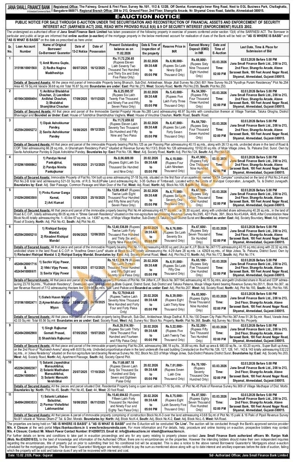 Authorized officers Mr. Ranjan Naik (Mobile No : 6362951653)
