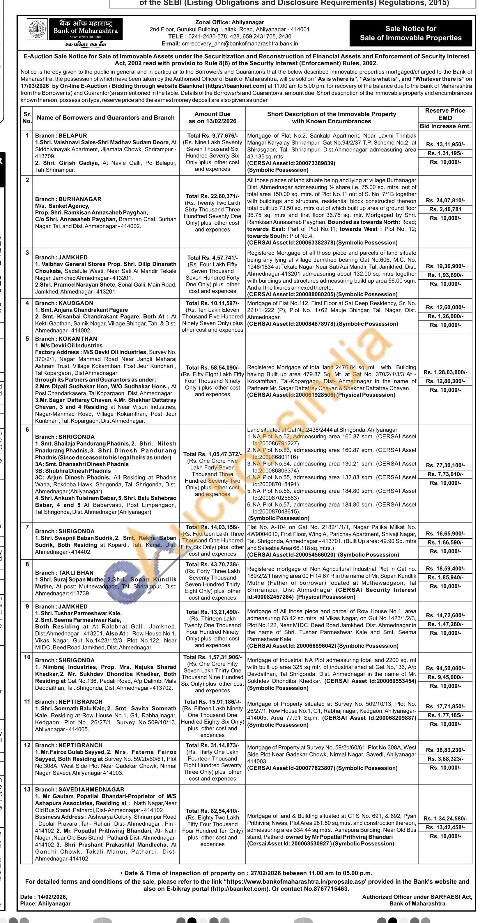 Mortgage of Property at Survey No. 59/25/60/61, Plot No.308A, West Side Plot Near Gadekar Chowk, Nirmal Nagar, Savedi, Ahilyanagar 414003