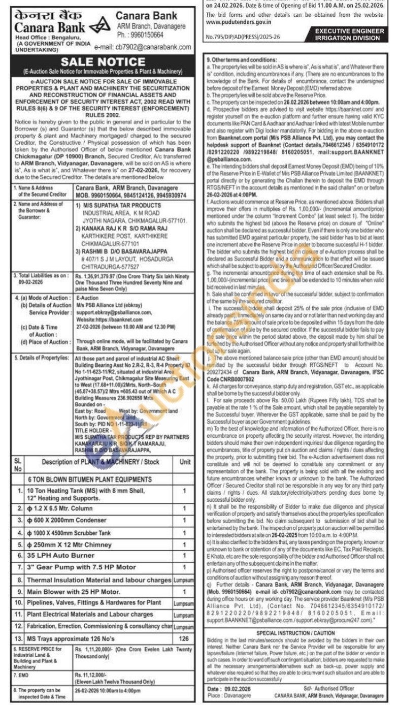 All those part and parcel of industrial AC Sheet Building Bearing Asst No 2.R-2, R-3, R-4 Property ID No 1-11-623-11/R2, situated at industrial Area Jyothinagar Post, Chikmagalur Site Measuring East to West (17.68-11.00)/2Mrts, North-South (45.87-38.57)/2 Mtrs #605.43 out of Which A C Building Measures 236.902650 Mrts Bounded on-East by: Road West by: Government land North by: Government land South by: PID NO 1-11-623-11/R1 TITLE HOLDER- MIS SUPATHA TAR PRODUCTS REP BY PARTNERS KANAKARAJU KR SOKTRAMARAJU, RASHMI B DIO BASAVARAJAPPA
