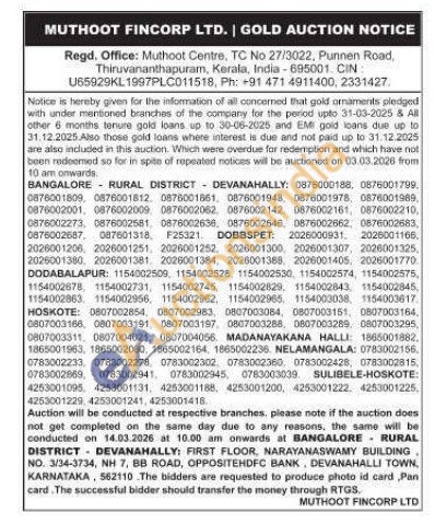Muthoot Fincorp Ltd Gold Auctions Auction in Bengaluru