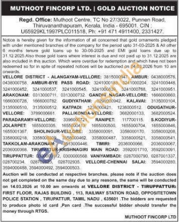 Muthoot Fincorp Ltd Gold Auctions Auction in Vellore