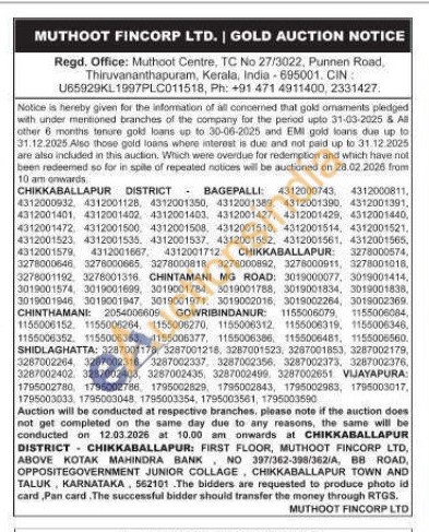 Muthoot Fincorp Ltd Gold Auctions Auction in Chikkaballapur