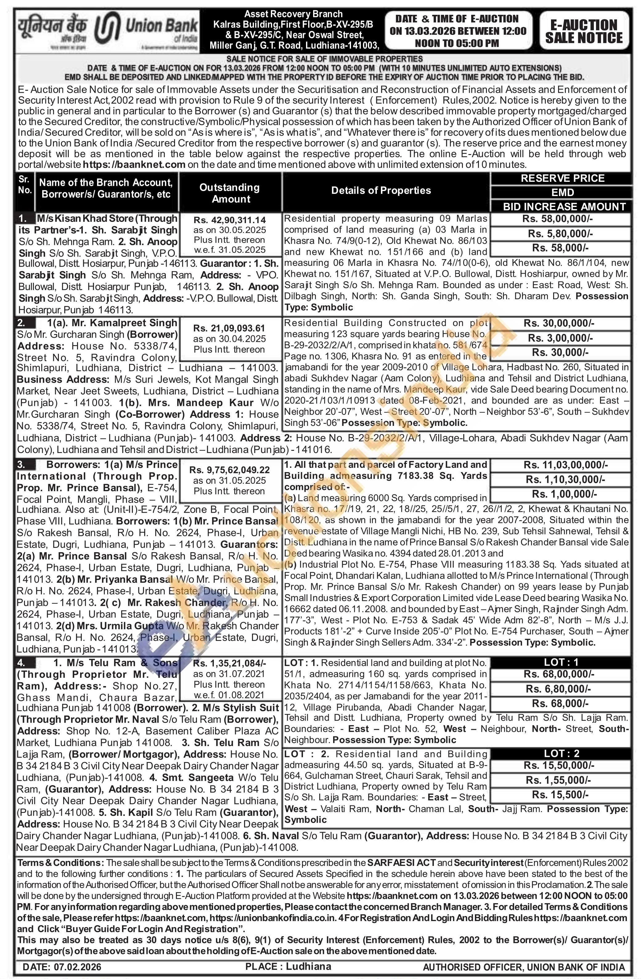 Residential property measuring 09 Marlas comprised of land measuring (a) 03 Marla in Khasra No. 74/9(0-12), Old Khewat No. 86/103 and new Khewat no. 151/166 and (b) land measuring 06 Marla in Khasra No. 74//10(0-6), old Khewat No. 86/1/104, new Khewat no. 151/167, Situated at V.P.O. Bullowal, Distt. Hoshiarpur, owned by Mr. Sarajit Singh S/o Sh. Mehnga Ram. Bounded as under: East: Road, West: Sh. Dilbagh Singh, North: Sh. Ganda Singh, South: Sh. Dharam Dev. Possession Type: Symbolic