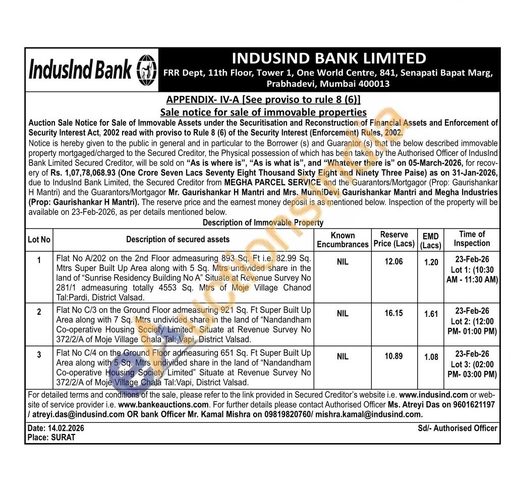 Flat No C/4 on the Ground Floor admeasuring 651 Sq. Ft Super Built Up Area along with 5 Sq. Mtrs undivided share in the land of "Nandandham Co-operative Housing Society Limited" Situate at Revenue Survey No 372/2/A of Moje Village Chala Tal:Vapi, District Valsad.