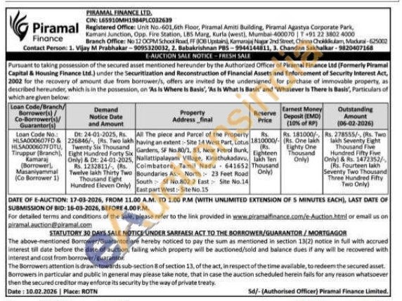 All The plece and Parcel of the Property having an extent-Site 14 West Part, Lotus Gardens, SF No.80/1, 83, Near Petrol Bunk, , Nallattipalayam Village, Kinathukadavu, Coimbatore, Tamil Nadu 641652 Boundaries As: North: 23 Feet Road South Sf No.802 2 East Site No.14 East part West:- Site No.15