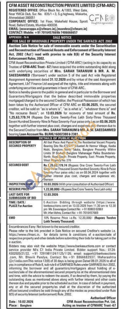 All that Piece And Parcel of The Residential Vacant Property Bearing Site No.472/277 Situated At Hennur Village, Kasba Hobli, Banglore North Taluka, Banglore Presently Within Limits Of Bruhath Banglore Mahanagar Palika Boundaries-North: Road South: Private Property, East: Private Property, West: Property No. 276