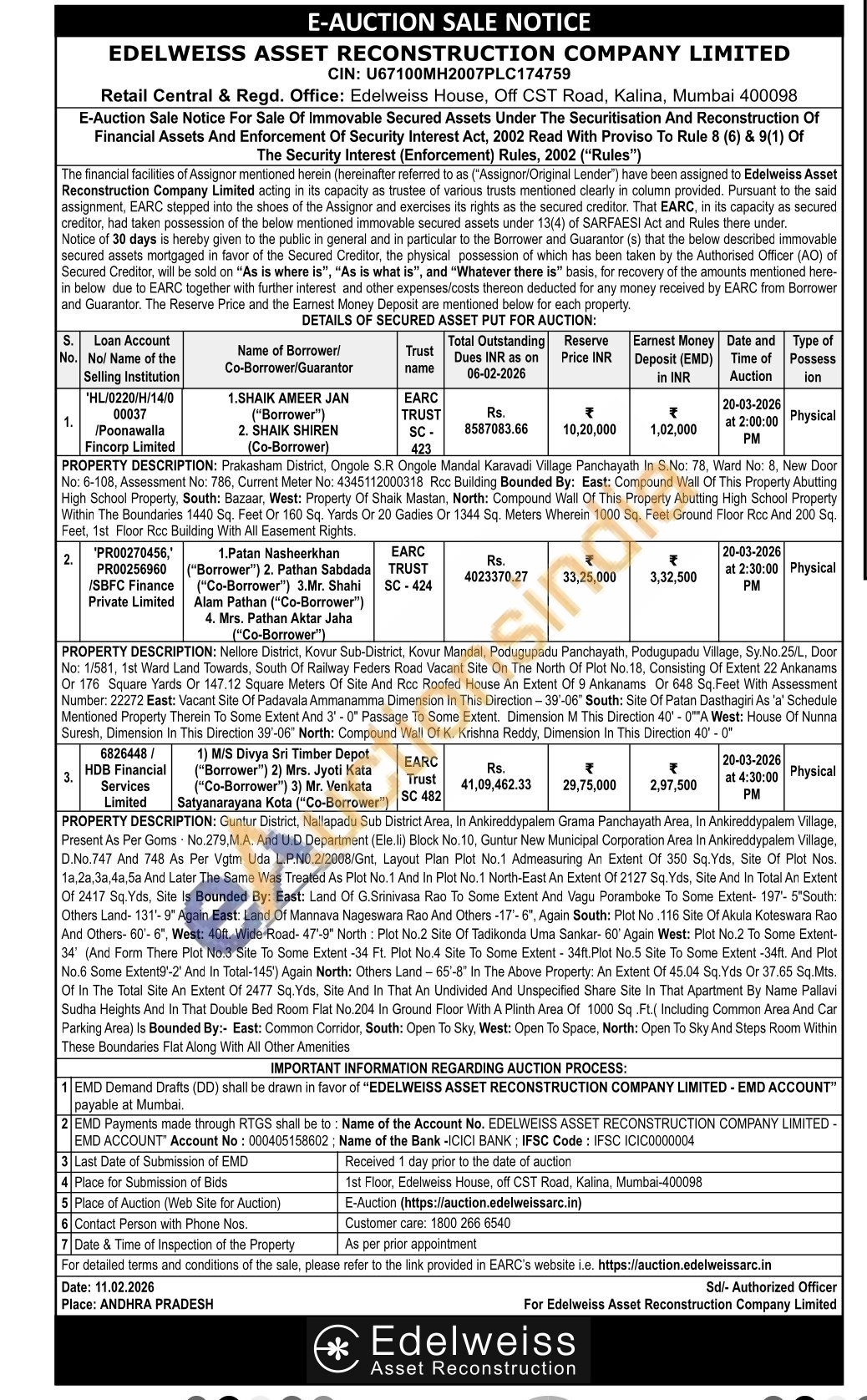 PROPERTY DESCRIPTION: Nellore District, Kovur Sub-District, Kovur Mandal, Podugupadu Panchayath, Podugupadu Village, Sy.No.25/L, Door No: 1/581, 1st Ward Land Towards, South Of Railway Feders Roac Vacant Site On The North Of Plot No. 18, Consisting Of Extent 22 Ankanams Or 176 Square Yards Or 147.12 Square Meters Of Site And Roc Roofed House An Extent Of 9 Ankanams Or 648 Sq. Feet With Assessment Number: 22272 East: Vacant Site Of Padavala Ammanamma Dimension in This Direction-39-06" South: Site Of Patan Dasthagiri As 'a' Schedule Mentioned Property Therein To Some Extent And 3-0 Passage To Some Extent. Dimension M This Direction 400A West: House Of Nunna Suresh, Dimension In This Direction 39-06" North: Compound Wall Of K. Krishna Reddy, Dimension In This Direction 40-0