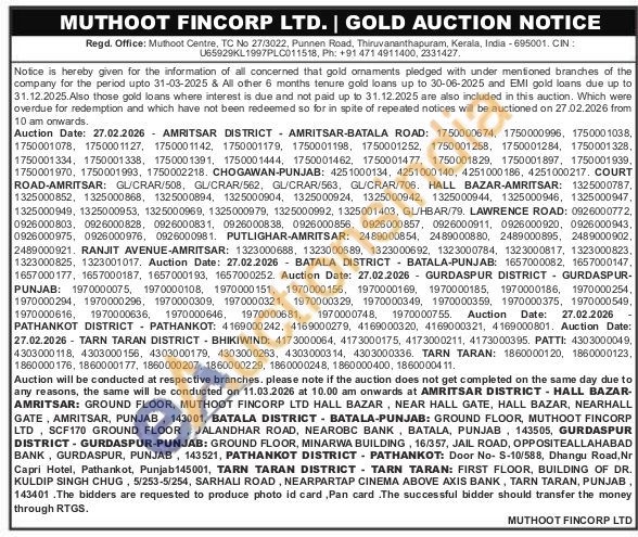 Muthoot Fincorp Ltd Gold Auctions Auction in Thiruvananthapuram