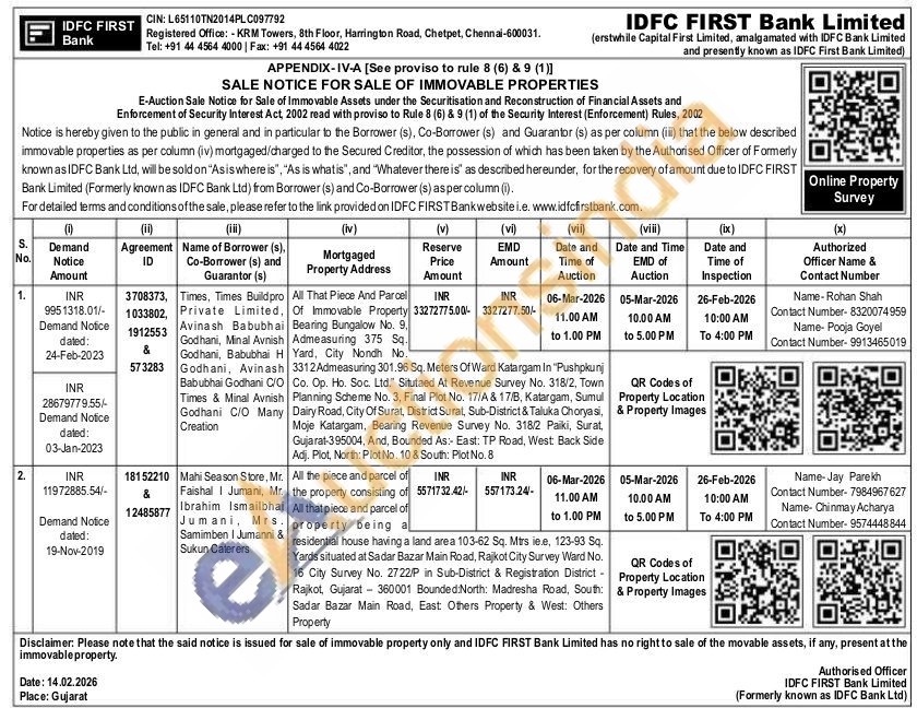 All That Piece And Parcel Of Immovable Property Bearing Bungalow No. 9. Admeasuring 375 Sq. Yard, City Nondh No.3312Admeasuring 301.96 Sq. Meters Of Ward Katargam In "Pushpkunj Co. Op. Ho. Soc. Ltd." Situtaed At Revenue Survey No. 318/2, Town Planning Scheme No. 3, Final Plot No. 17/A & 17/B, Katargam, Sumul Dairy Road, City Of Surat, District Surat, Sub-District & Taluka Choryasi, Moje Katargam, Bearing Revenue Survey No. 318/2 Paiki, Surat, Gujarat-395004, And, Bounded As:- East: TP Road, West: Back Side Adj. Plot, North: Plot No. 10 & South: Plot No. 8