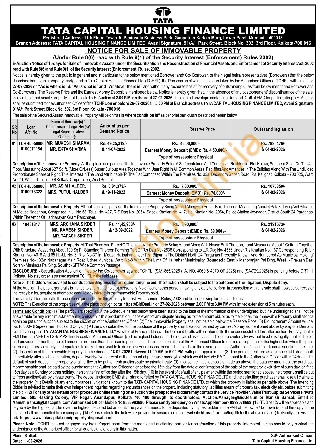 Description of the Immovable Property. All that piece and parcel of the Immovable Property Being A Self-contained And Composite Residential Flat No. 4a, Southern Side, On The 4th Floor, Measuring About 627 Sq.ft. (More Or Less) Super Built-up Area Together With User Right In All Common Areas, Facilities And Amenties In The Building Along With The Undivided Proportionate Share of Right, Title, Interest In The Land Attributable To The Flat Comprised Within The Premises No. 35a, Debendra Ghosh Road, P.s. Kalighat, Kolkata-700025, Ward No. 71, Within The Limit Of Kolkata Corporation, West Bengal