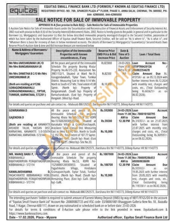 2) All the peace and parcel of the immovable Schedule The property Bearing Khata No. 545/237/8 32, RDPR No-151600200300200586. Situated at Kanakatte Village & GramaPanchayath Arasikere Taluk, Hassan Dist. Measuring East to West 8.8392 Mir. North to South 12.192 Mtr. Total extent of 107.77 Somtr (North by)- Galli (South by)- Road. (East by)-Site No.31. (West by)-Site No.33