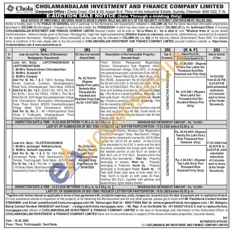 Trichirappalli District, Woraiyur Sub Registration District, Srirangam Taluk, Nachikurichi Village, the property comprised in survey No. 60/10 (New survey No. 60/10 A1) an extent of Hec.0.20.5 ares equivalent to Ac.0.50 ½ cents and the land has been converted into house plots within this the western portion of plot No.11 an extent of 585 Sq.ft. out of 1170 Sq.ft., Situated within the following four boundaries: East by: Property belonging to selvam, West by Property belonging to Palanivel, North by Property belonging to Arumugam Nadar, South by 10 Feet wide Road. East west on both sides 19 12 Feet, North to South on both sides 30 Feet, totalling 585 Sq.ft., together with pathway and easementary rights relates thereto.