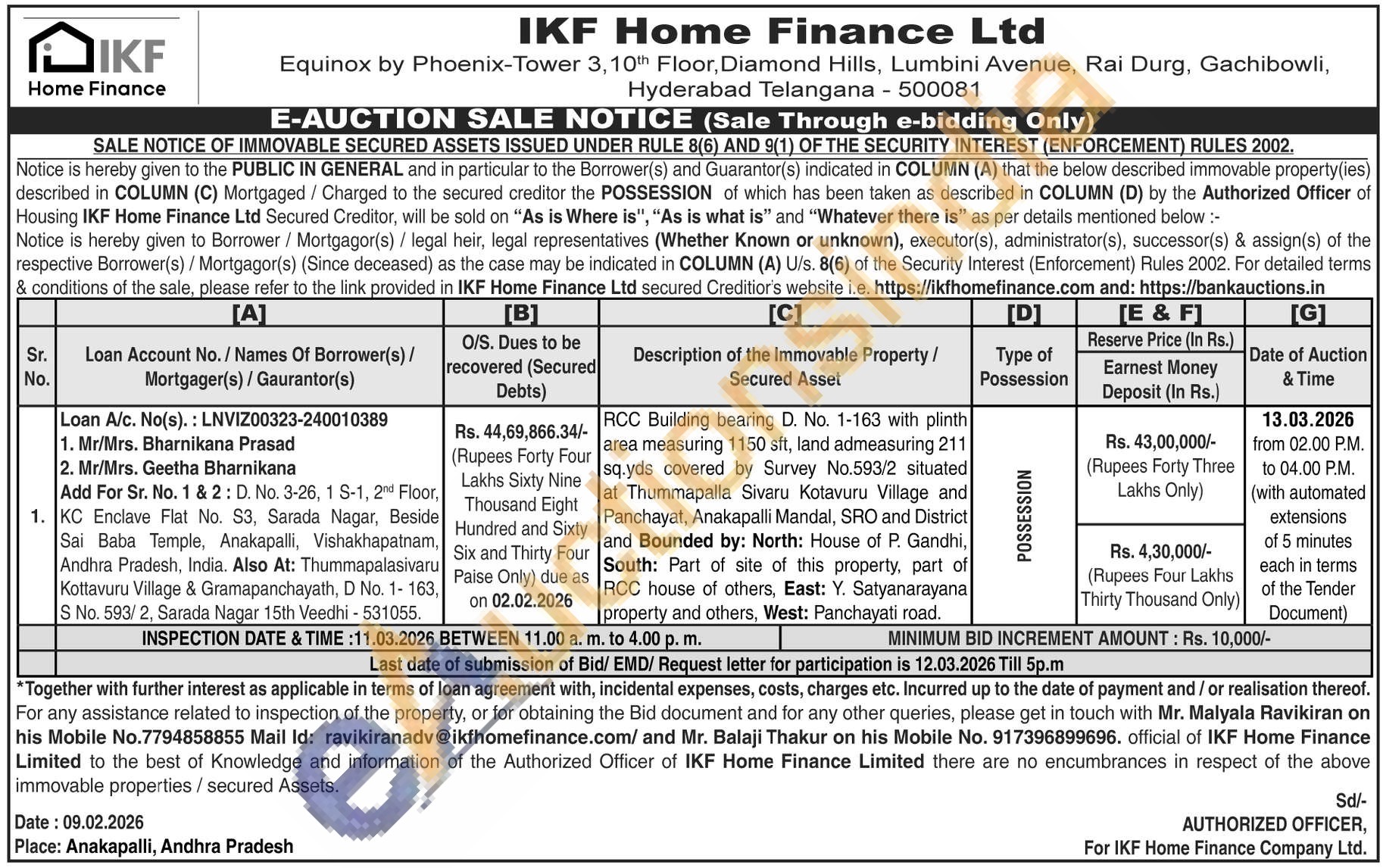 Mr. Malyala Ravikiran on his Mobile No.7794858855 Mail Id: ravikiranadv@ikfhomefinance.com/ and Mr. Balaji Thakur on his Mobile No. 917396899696.