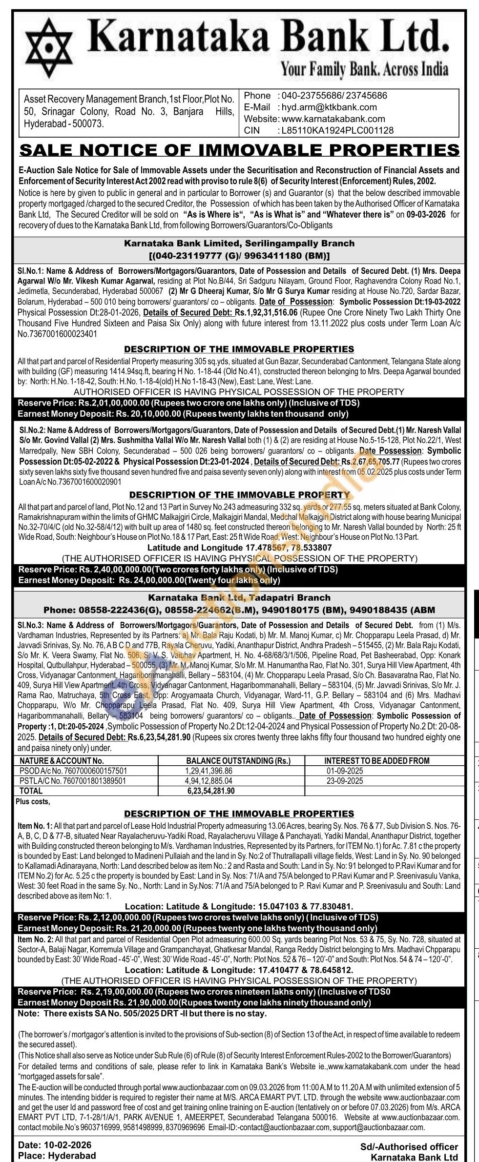 All that part and parcel of land, Plot No. 12 and 13 Part in Survey No.243 admeasuring 332 sq. yards or 277.55 sq. meters situated at Bank Colony, Ramakrishnapuram within the limits of GHMC Malkajgiri Circle, Malkajgiri Mandal, Medchal Malkajgiri District along with house bearing Municipal No.32-70/4/C (old No.32-58/4/12) with built up area of 1480 sq. feet constructed thereon belonging to Mr. Naresh Vallal bounded by North: 25 ft Wide Road, South: Neighbour's House on Plot No. 18 & 17 Part, East: 25 ft Wide Road, West: Neighbour's House on Plot No.13 Part.