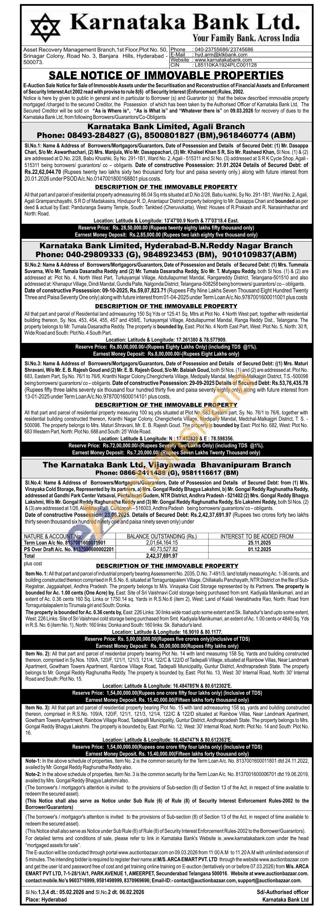 All that part and parcel of residential property admeasuring 86.04 Sq mts situated at D.No 2/28, Babu kushki, Sy No. 291-1B1, Ward No. 2, Agali, Agali Grampanchayathi, SRD of Madakasira, Hindupur R. D, Anantapur District property belonging to Mr. Dasappa Chari and bounded as per deed & actual by East: Panduranga Swamy Temple, South: Tankbed (Cheruvukatta), West: Houses of R.Prakash and R. Narasimhachar and North: Road.