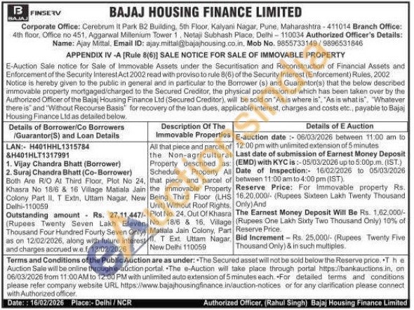 All that piece and parcel of the Non-agricultural Property described as: Schedule Property All that piece and parcel of the immovable Property Being Third Floor (LHS Unit) Without Roof Rights, Plot No. 24. Out Of Khasra No. 18/6 & 16, Village Matiala Jain Colony, Part II. T Ext. Uttam Nagar, New Delhi 110059