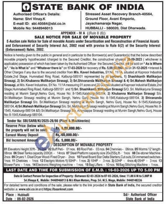 01 Elevators Height 30'ft-26 nos. 02 Buff Peti- 01 nos. 03 Rool Pati- 03 nos. 04 Chennies- 06nos. 05 Worms 12 length-08nos 06 Steel Tanks capacity 2000t 14nos 07 Steel Platform capacity size 20x25Sq.ft 1nos 08 De-stoner Machine-2nos 09 Dryers 1. Disel Dryer Wood/Fired Dryer 2nos 10 Panel Board Star Delta Starters, Cut outs, Oil immersed switches-Inos 11 Chekkies 1nos 12 Electgric Motors 1) 50HP-1 nos. 2) 10HP 3 nos. 3) 02HP 4nos 4) 05HP 3 nos 13 Blower Fans 1 nos. 14 Electronic Weighing machine 1 nos. 15 Bag Lifters 10 nos. 16 Bag Stitching Machine - 1 nos..