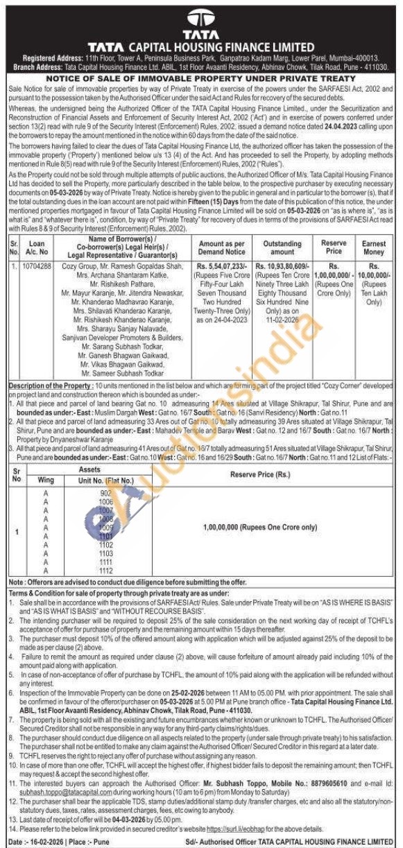 Unit No. (Flat No.) : 902,1006, 1007, 1008, 1009, 1101, 1102, 1103, 1111, 1112