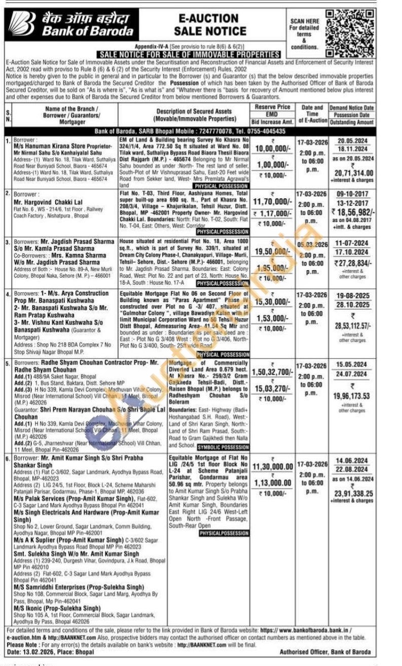 EM of Land & Building bearing Survey No Khasra No 324/1/4, Area 772.50 Sq ft situated at Ward No. 08 Tilak ward, Suthaliya Bypass Road Biaora Thesil Biaora Dist Rajgarh (M.P.) 465674 Belonging to Mr Nirmal Sahu bounded as under North- The rest land of seller, South-Plot of Mr Vishnuprasad Sahu, East-20 Feet wide Road from Sekker land. West- Mrs Premiata Agrawal' land PHYSICAL POSSESSION