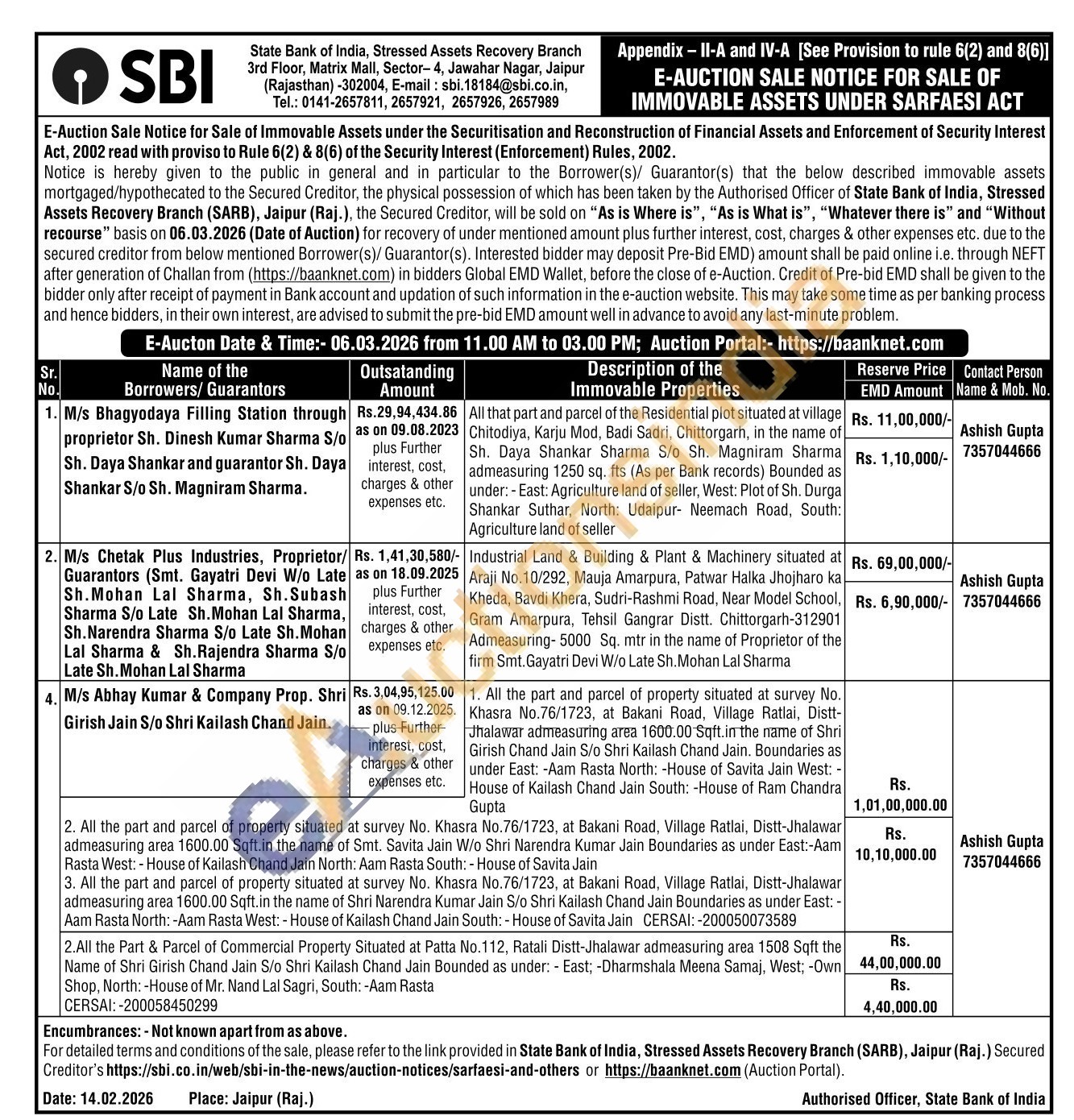 Industrial Land & Building & Plant & Machinery situated at Araji No.10/292, Mauja Amarpura, Patwar Halka Jhojharo ka Kheda, Bavdi Khera, Sudri-Rashmi Road, Near Model School, Gram Amarpura, Tehsil Gangrar Distt. Chittorgarh-312901 Admeasuring-5000 Sq. mtr in the name of Proprietor of the firm Smt. Gayatri Devi W/o Late Sh. Mohan Lal Sharma