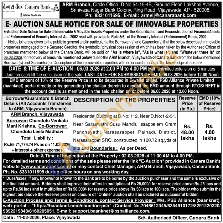 Residential Building at D.No: 112, Near D.No: 1-2-51, Near Saraswathi Susu Mandir, Issappalem Gram Panchayath, Narasaraopet, Palnadu District, Narasaraopet SRO, constructed in 120.72 sq.yds of site and Boundaries: As per Deed